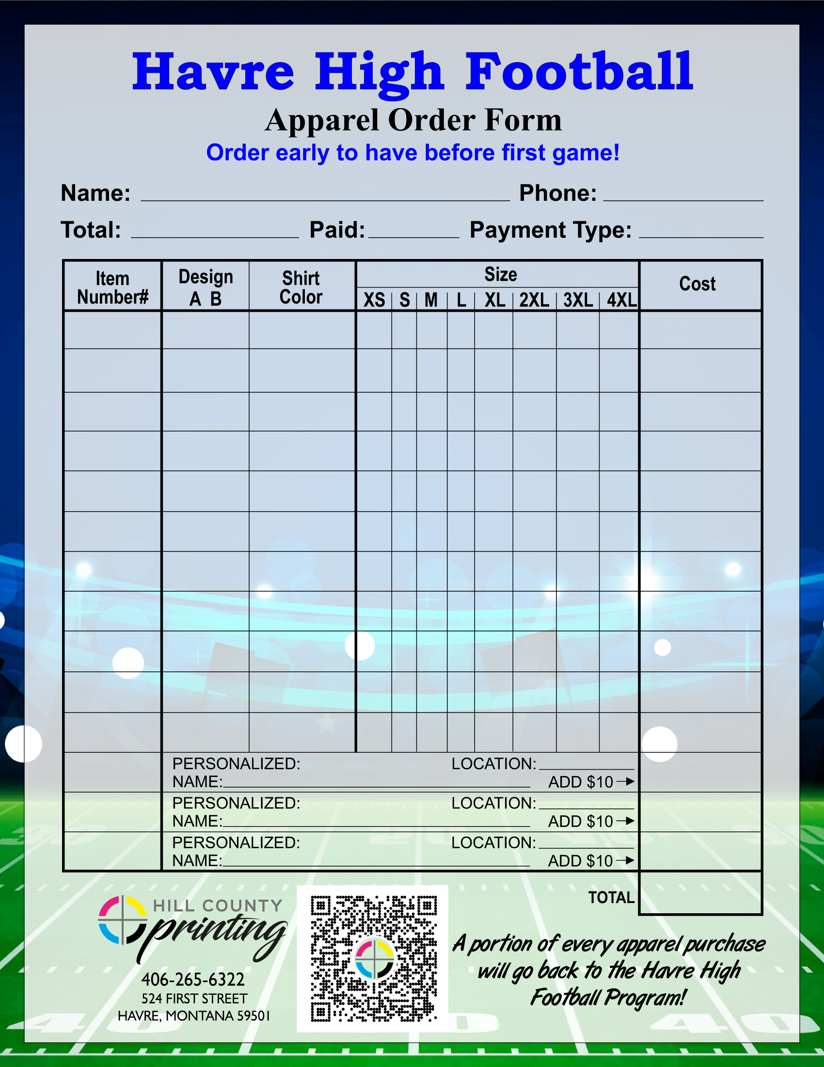 Click on the Catalog to see our Havre Football Apparel