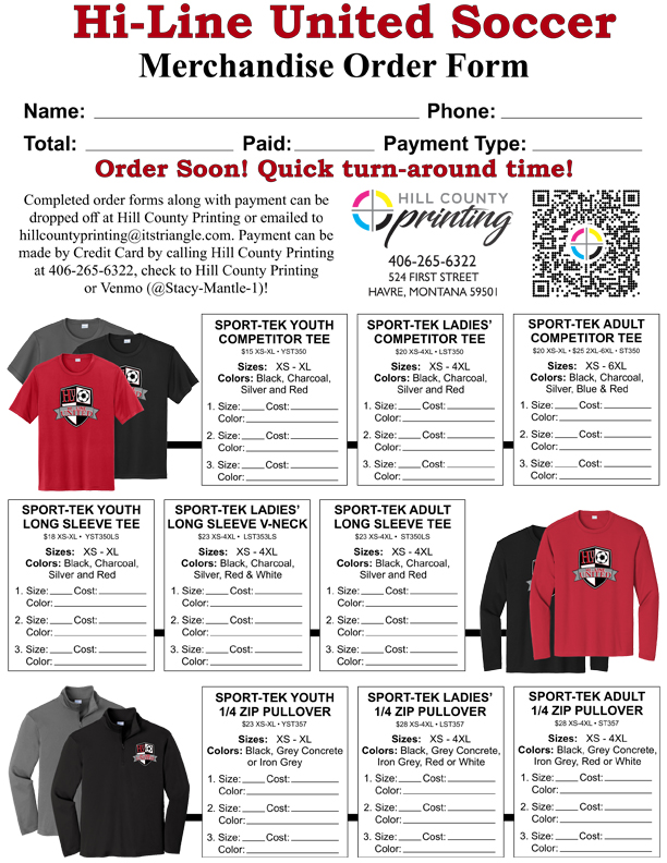 Click on the Catalog to see our Hi-Line United Soccer Apparel